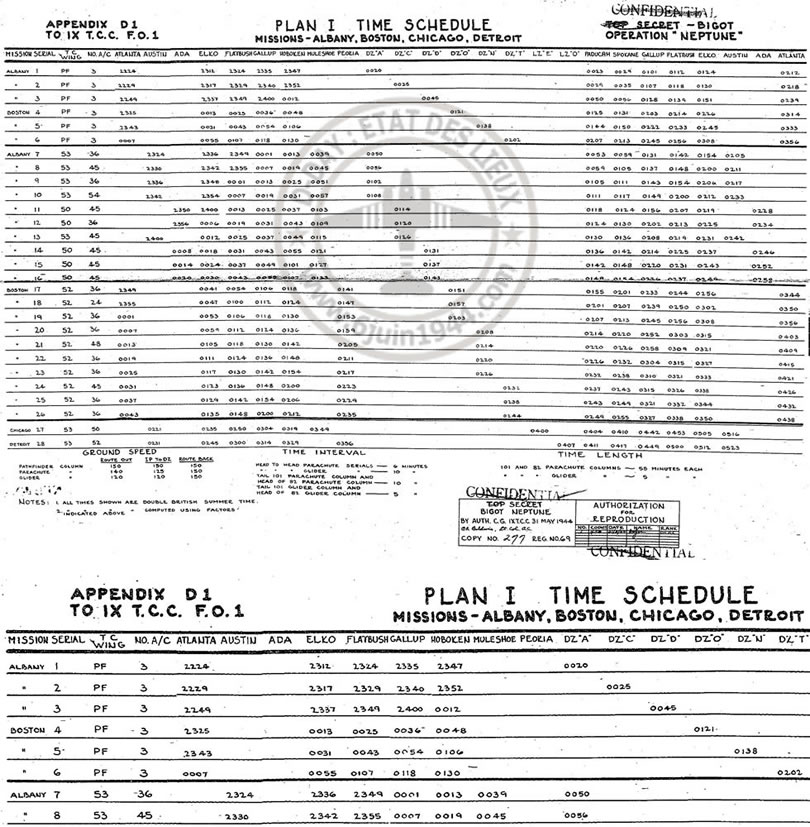 Appendix D1 to F.O.#1 - 31 May 1944 Time Schedule - Missions Albany, Boston, Chicago, Detroit |